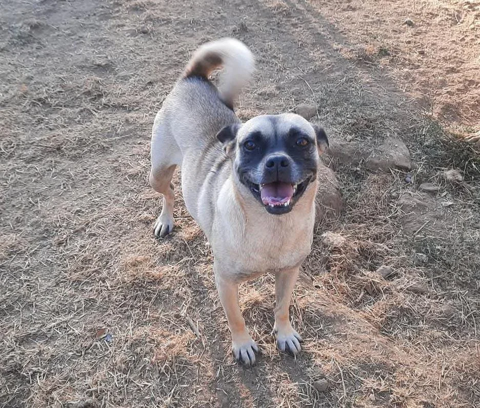 Mestiza de pug, muy cariñosa, alegre. Esterilizada y con todas las vacunas al día.