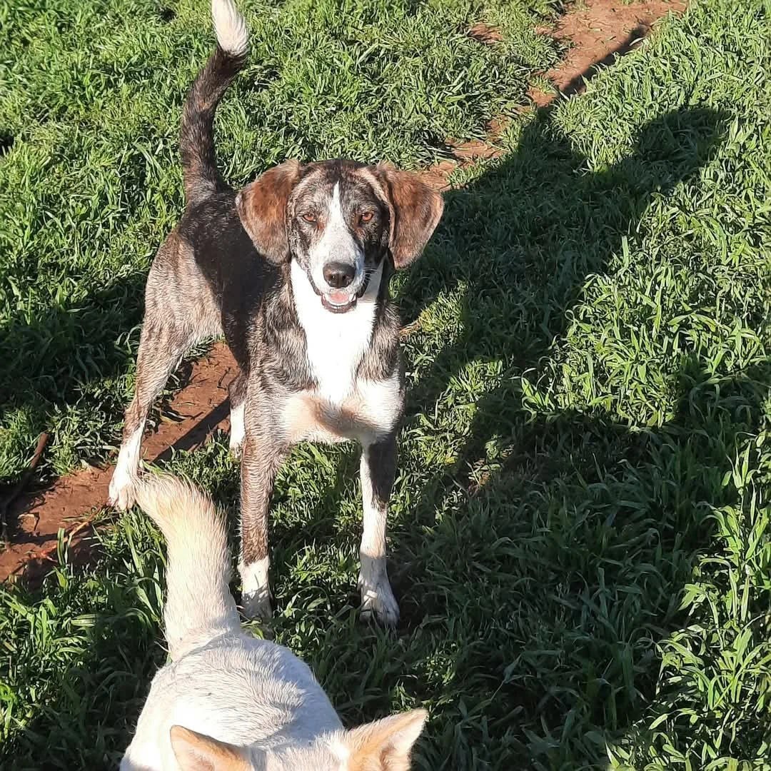 Mestiza foxhound, mediana, 2 años. Extremadamente cariñosa, necesita casa con patio, amiga de sus amigos. NO CACERÍA.